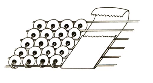 Repeat these steps until your design is completed. When you have finished, and before it is taken from the loom, secure the thread ends by applying a strip of adhesive tape over the warp threads.