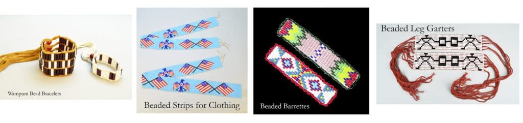 Use our Ojibwa Bead Loom or our Mighty Mini Bead Loom to create strips of beadwork. After you finish your beaded strip you can use them as straps, belts, and bracelets. You can also attach beaded loom strips to other items like shirts, leggins, moccasins, and bags. Bead weaving on a loom is easy to learn to do and can be done with a variety of beads including Seed Beads, Pony Beads, and Wampum Beads.