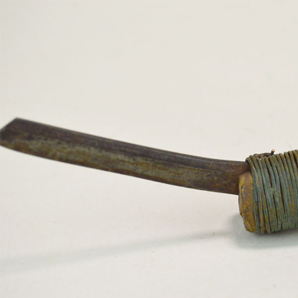 This antique Knife Crooked Antique Copper Wire will make a unique addition to your collection The crafter carved the wood handle so it has gentle bump out parts. On the back of the handle you will see ‘158 Co 1 CCC’ carved in to the wood. Copper Wire wrapped around the end holds the metal blade in place.