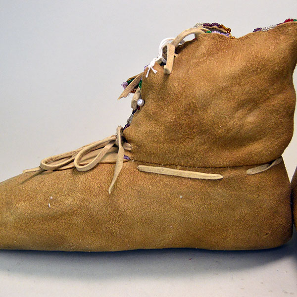 Unlined and supple, these moccasins offer a natural feel and traditional construction. They measure approximately 9.5 inches in length, 3.5 inches wide at the broadest point, and stand about 7 inches tall. They are a classic example of Cree artistry and cultural expression.