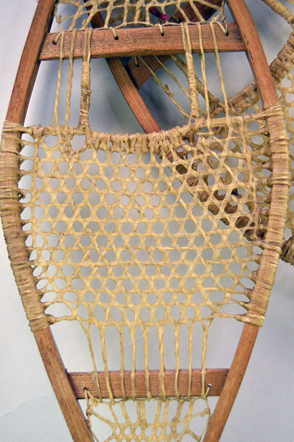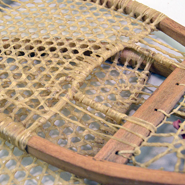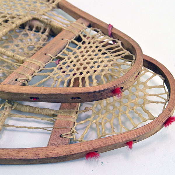 Crafted with care, these kids’ vintage snowshoes feature rawhide lacing stretched across a classic wooden frame. The interwoven rawhide offers sturdy support while preserving the flexible stride of early snowshoe designs. Sized for a child, they may show gentle signs of age that add character. These snowshoes are ideal for showcasing traditional craftsmanship in your collection. They would be great for teaching about Indigenous technologies, winter survival, or early outdoor gear. They measure 29.5″ long x 9″ wide, they are in very good condition for their age.