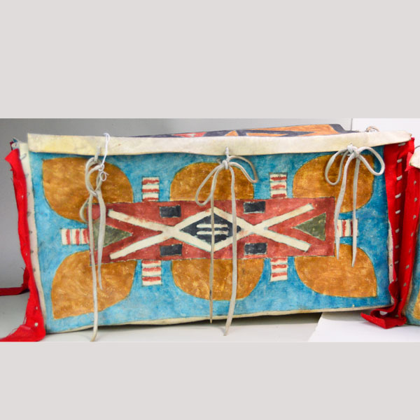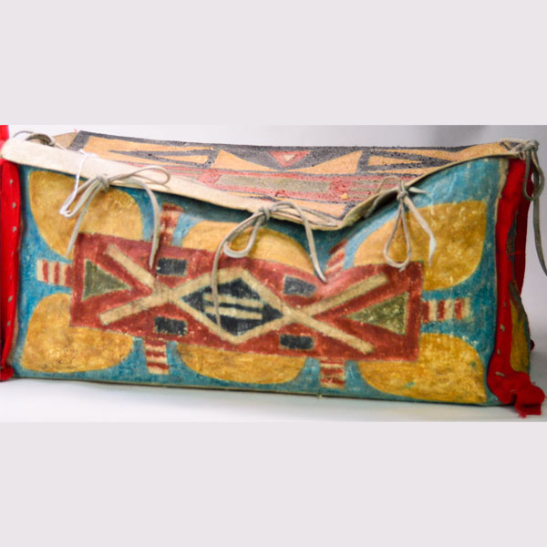 Rawhide serves as a durable material for making shields and containers of many sizes and shapes. These versatile containers held food, clothing, personal belongings, and important cultural items. These containers played an essential role in the mobile lifestyle of many Plains communities since they are lightweight and sturdy.