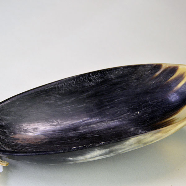 Crafters from many Native American traditions carve spoons from Bison, Sheep or Elk horn. They soften the outer part of the horn in hot water to modify the shape. Sometimes they decorate them with carvings. Various cultures throughout history use carved horn spoons for a variety of purposes, such as eating, stirring, and serving food. The material is durable and can withstand the rigors of everyday use. The carving and shaping of the horn can result in intricate and artistic designs, making these not only practical but also visually appealing.