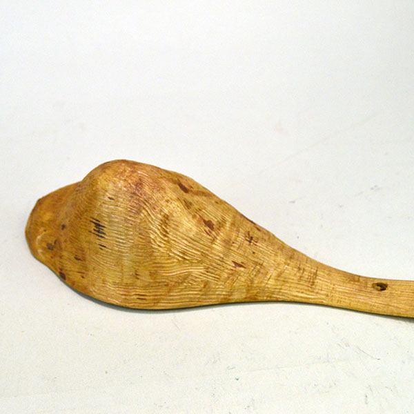 This hand-carved canoe cup showcases the richly grained burl of a tree, blending nature’s artistry with time-honored craftsmanship. Its rounded bottom and flowing contours echo the movement of water. You can add your own leather lacing in the two small holes in the handle —ideal for hanging the cup from a belt or pack during travel. Rugged yet refined, this vessel carries the spirit of the wilderness in every curve. Living History Re-enactors often choose these cups as authentic drinking companions that honor tradition and utility alike. This Canoe Cup Hand Carved measures 10″ in length, and the cup part measures 6″.