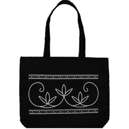 Native Americans of Northeastern North America frequently used the Double Curve Motif design on clothing, bags, birchbark containers and other items. The basic twin curves can be ‘filled in’ with a variety of design elements. Our Double Curve Motif Tote Bag features floral elements on the main design and the border designs. Our classic black Double Curve Motif is sure to become a favorite!