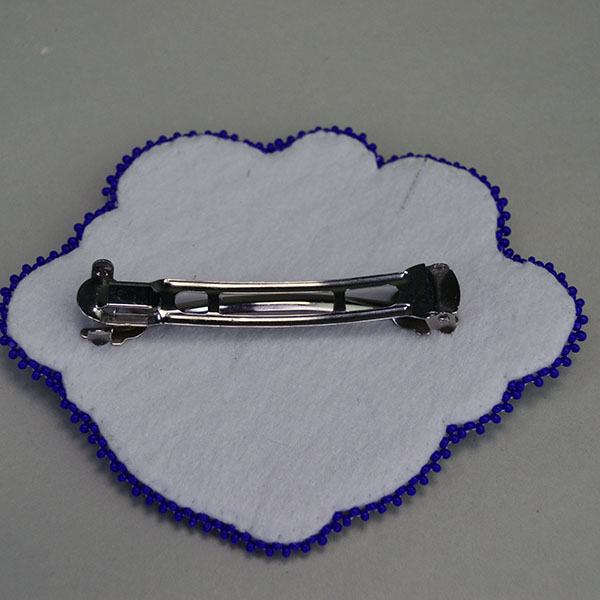Add a chain and you can wear this Beaded Barrette as a necklace! This beautiful beaded barrette measures approx. 4.25 inches x 3.5″. The barrette clasp measures 2.75 inches long.